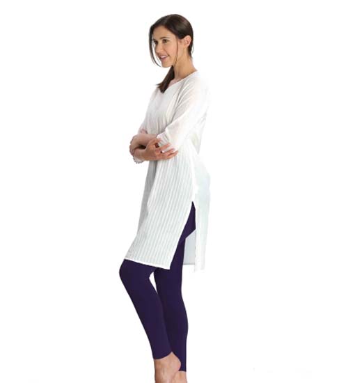Gentle leg hugging fit with length extended until the ankle
