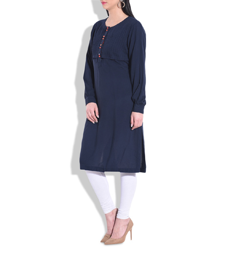Blue Cotton Plain Kurta